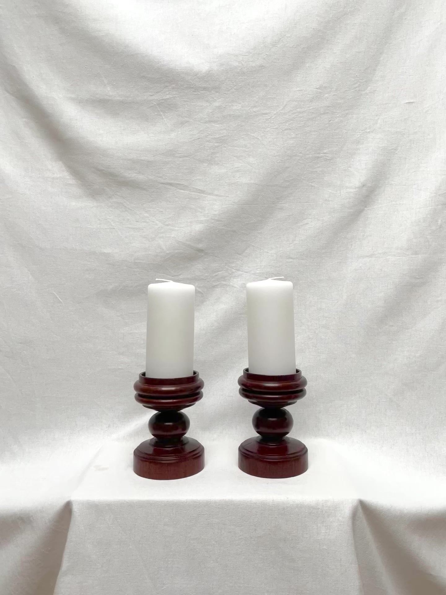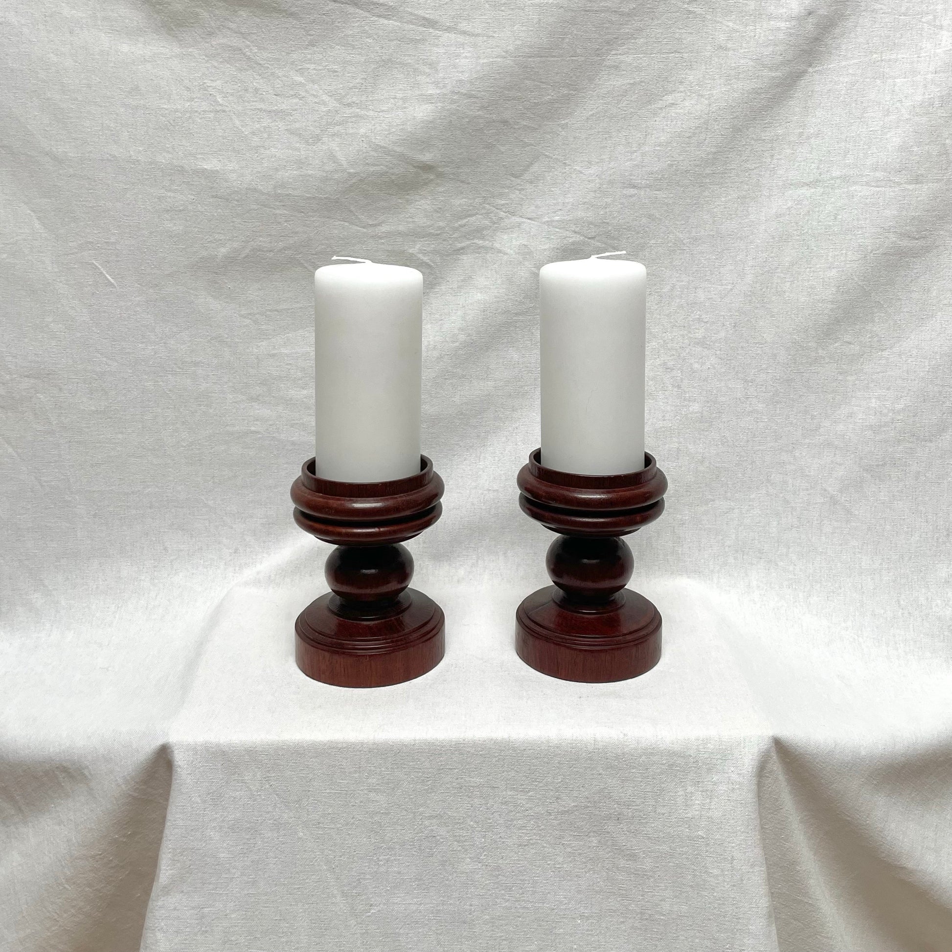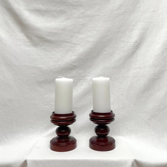Ancienne paire de pique cierge en bois massif poli et sculpté à la main.